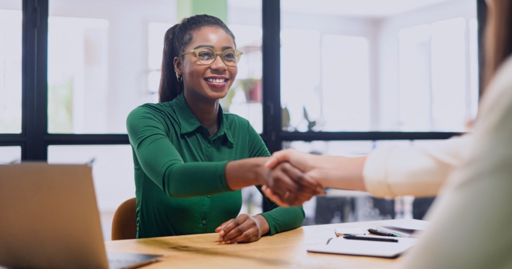Link to: Executive interview mastery: Tips from recruiters for candidates Link to: Executive interview mastery: Tips from recruiters for candidates Executive interview mastery: Tips from recruiters for candidatesExecutive candidate shaking hands with hiring panel during a leadership interview, guided by insights from a recruitment agency.