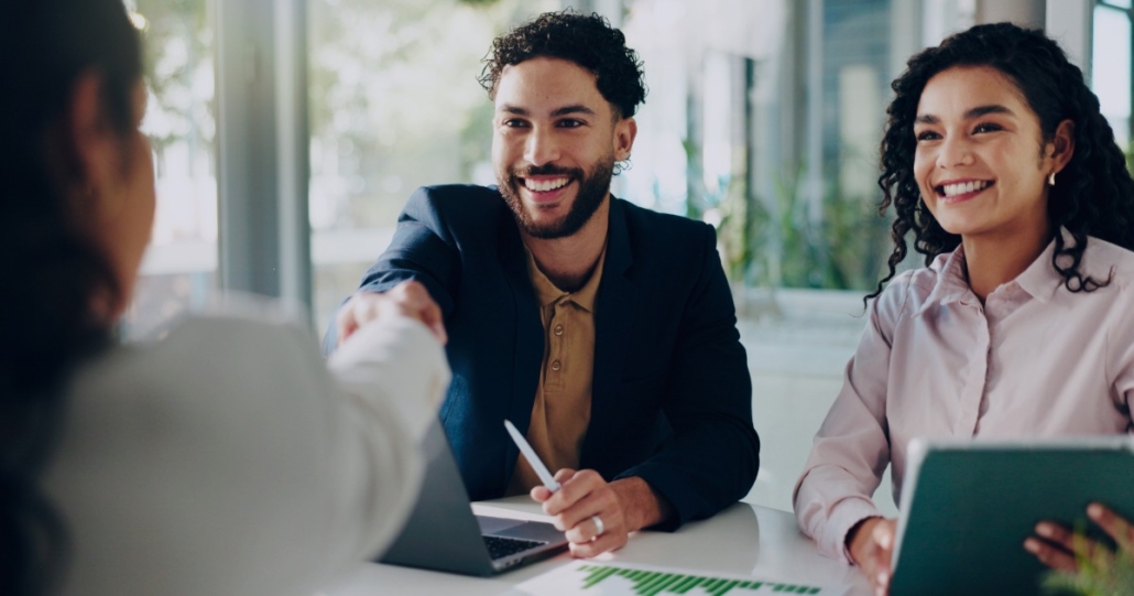 Hiring managers meeting with a candidate, illustrating how recruitment services support faster and more effective early-year hiring decisions compared to internal hiring.